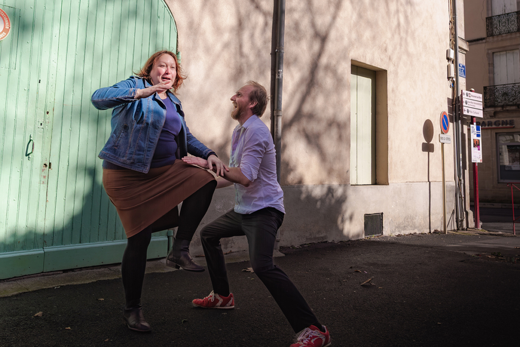 Quelles intimités pourront être livrées dans cette rue où nos deux inconnu.e.s se croisent, se racontent alors que rien ne les prédestinait à se rencontrer ?